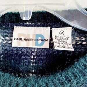 VTG Paul Harris Design Mohair blend Sweater Medium Plaid Navy Green Crewneck.