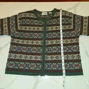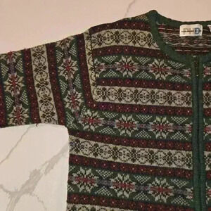 VTG Paul Harris Womens Full Zip Cardigan 100% Wool Shetland Green Size Large