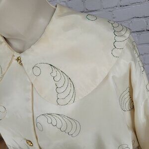 VTG Paulette Ivory Satin 1940 Parisan Gold Button Embroidered House Coat Size 14