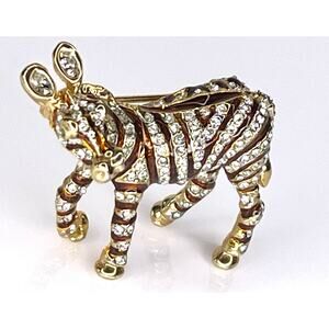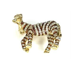 Pave Crystal And Copper Enameled Gold Striped Zebra Pin