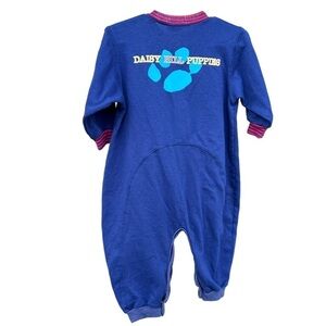 VTG Peanuts Snoopy Daisy Hill Puppies Romper Roughhouse Blue Red 18 Mo USA GUC