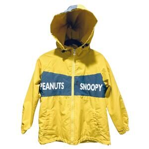 VTG Peanuts Worldwide Snoopy Yellow Boys Size 12 Large Hooded Raincoat Jacket