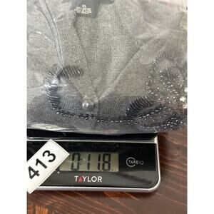 VTG Peck & Peck Cardigan Sweater XL Grey Beaded Floral Coquette Fairy Goth