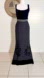 This elegant black Couture gown by Peggy Jennings is perfect for weddings and special occasions, featuring a sleeveless design with a sophisticated scoop neckline. The floor-length maxi style gracefully flares into a mermaid silhouette, enhanced by a chic silver belt that adds a touch of glamour.