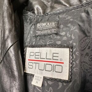 VTG Pelle Studio Black Genuine Leather Blazer Trench Jacket Women's M Thermolite