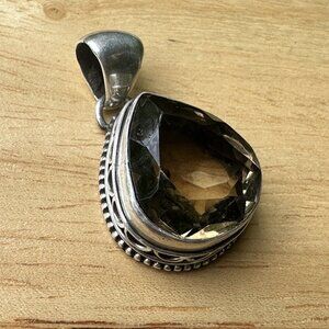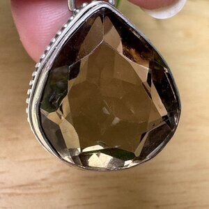 VTG Pendant 1.25" Tear Drop Faceted Smoky Quartz Gem 925 Sterling 10.9g