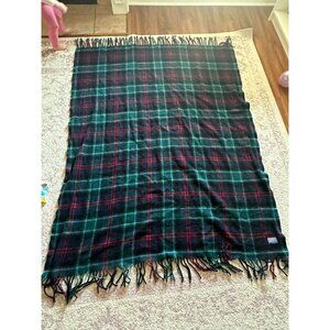 VTG Pendelton Throw 76'' X 53'' Green Red Blue Plaid Blanket 60s/70s Virgin Wool