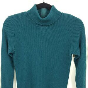 VTG Pendleton 100% Pure Virgin Wool Back Zip Ribbed Turtleneck 34/S Green