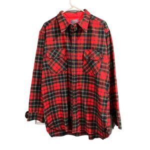 VTG Pendleton Board Shirt Flap Pocket Loop Collar Maclean Tartan Red Wool Men XL