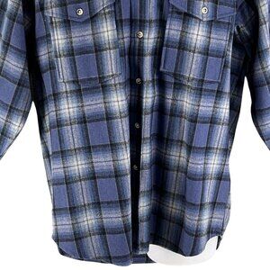 Vintage Pendleton Size Medium 100% Virgin Washable Wool Outdoor Shirt Blue Tartan Plaid Button-Up