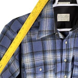 Pendleton shirt wool outdoor shirt blue plaid shirt men's plaid shirt button-down shirt medium size shirt virgin wool long sleeve chest pockets outdoor apparel men's fashion blue checkered shirt Pendleton woolen mills