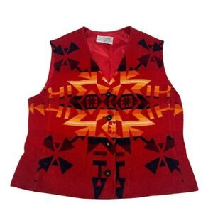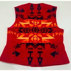 This vintage Pendleton vest is a true gem for any fashion enthusiast. The vibrant red color and Aztec theme make it a standout piece that is sure to turn heads. Crafted from high-quality wool, this vest is not only stylish but also comfortable to wear.