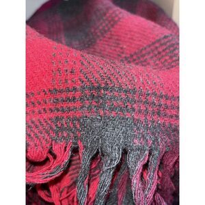 Pendleton Red Black Tartan Wool Fringe Throw Blanket w/REPAIR.
