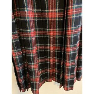 This vintage Pendleton Tartan Suit Skirt is a classic two-piece set perfect for various occasions, including parties, casual wear, work, and business meetings. Made of 100% wool in the United States, this authentic Black Stewart Tartan suit features a double-breasted blazer with a three-button sleeve and a pleated skirt. The mid-length jacket has a velour collar and button, making it a stylish and timeless addition to any wardrobe. The set is designed for a size large with a waist size of 32 inches and is perfect for all seasons.