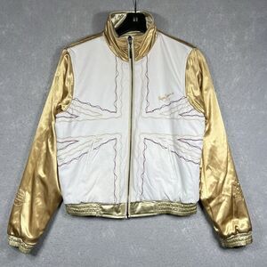 Up for sale: VTG Pepe Jeans London Bomber Varsity Jacket Reversible Gold Satin Womens LARGE