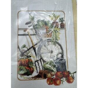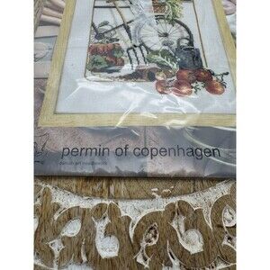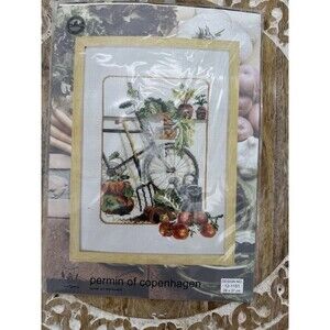 VTG Permian Of Copenhagen cross stitch Kit DMC 12-1151 26x37 Bicycle Garden Veg