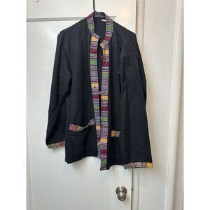 VTG Peruvian Black Cotton Jacket Colorful Trim Made In Nepal Measures Large