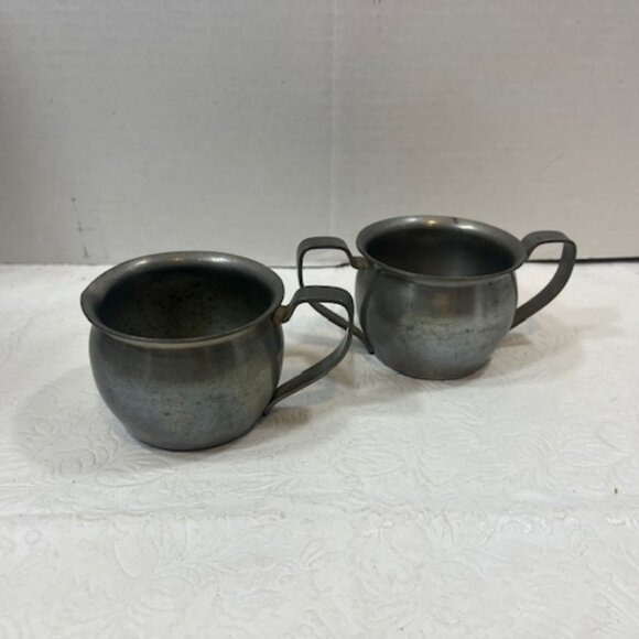 Vintage Solid Pewter Creamer and Sugar Bowl