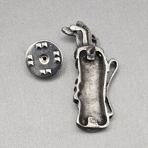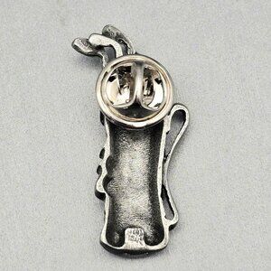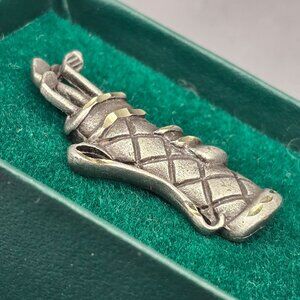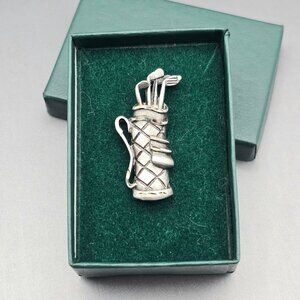 VTG Pewter Golf Club Bag Lapel Pin Brooch 1.5" Diamond Cut Accents Original Box