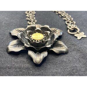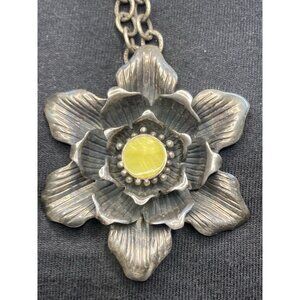 VTG Peyote Bird 925 Sterling Lotus Flower Yellow Stone Pendant Necklace 15.5 in