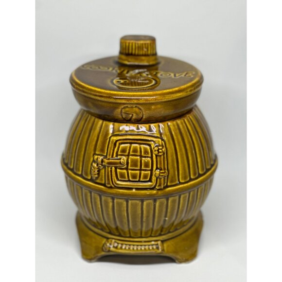 VTG Pfaltzgraff USA Cookie Stove Jar Canister Brown Barrel Design