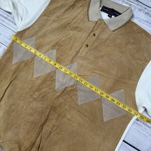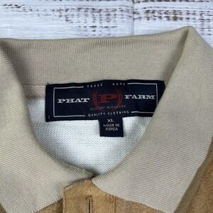 VTG Phat Farm Shirt Men's XL Beige Y2K Suede Button Knit Polo Unc Argyle Leather