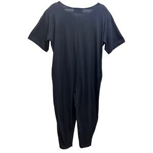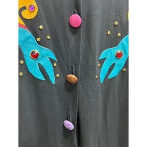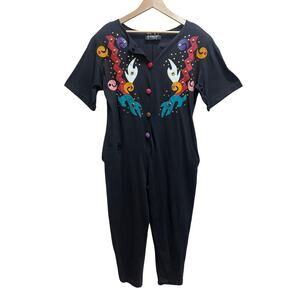 VTG Philip Noel 80's Washed Black Jumpsuit O/S Abstract Leather Applique Artsy Boho Art To Wear. New with defects , Deadstock. *One top button is missing.