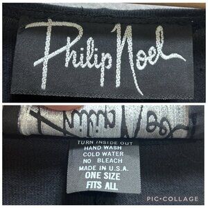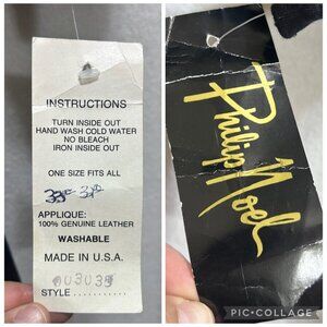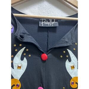 VTG Philip Noel 80's Blk Jumpsuit O/S Abstract Leather Applique Artsy Deadstock