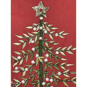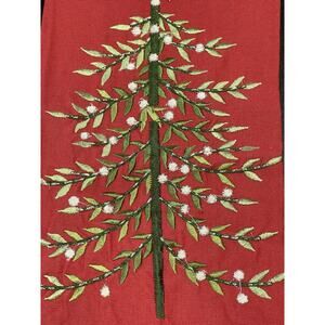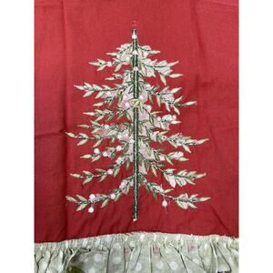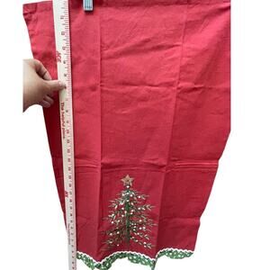 VTG Pier 1 Imports 100% Cotton Red Green White Christmas Tree Polkadot Tea Towel