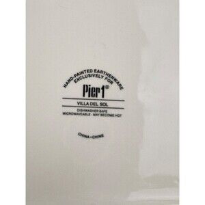 Add a pop of vintage Mediterranean charm to your home with this Pier 1 Villa del Sol hand-painted square plate. Featuring whimsical, rustic folk art village houses in bright, vibrant colors, this earthenware plate is perfect for collectors, display, or unique table settings.