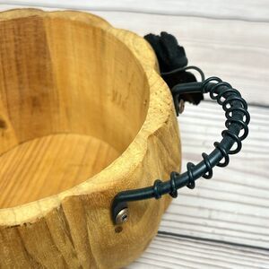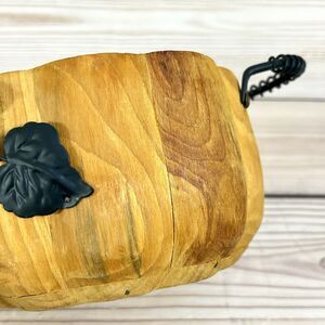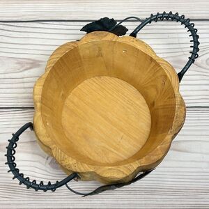 VTG Pier1 Wooden Pumpkin Bowl Basket Metal Handle Rustic Thanksgiving Fall Decor