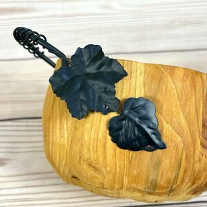 VTG Pier 1 Wooden Pumpkin Bowl Basket Metal Handle & Leaves Rustic Thanksgiving Fall Decor.