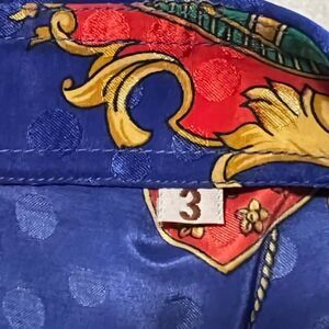 VTG Pierre Balmain Paris Royal Blue Printed Silk Satin Button Down Long Sleeve Top Size 3
