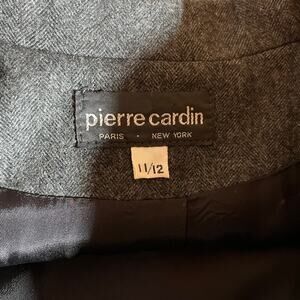 VTG Pierre Cardin Blazer Skirt Set Womens 11/12 Gray Wool Herringbone 2 Piece Career Business Academia Geek