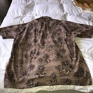 Perfect for a day out on the beach or a summer evening, this vintage Pierre Cardin men's Hawaiian shirt is a must-have for any fashion-forward man. With a palm tree pattern and earthy brown color, this shirt is a great addition to any casual outfit. It features short sleeves, a button-up design, and coconut buttons for an added tropical touch. Crafted from high-quality cotton fabric, this shirt is both comfortable and durable. The size is a regular fit and is labeled as L. It is pre-owned and has been properly maintained to ensure its quality. Add some Hawaiian vibes to your wardrobe with this unique and stylish Pierre Cardin shirt.
