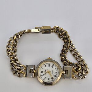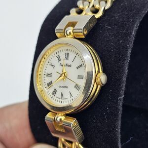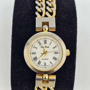 VTG Pierre Nicol Women Watch 22MM Cream Dial Gold Chain Bands 6" New Battery