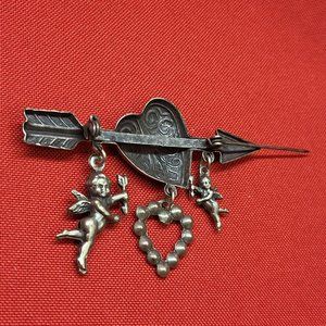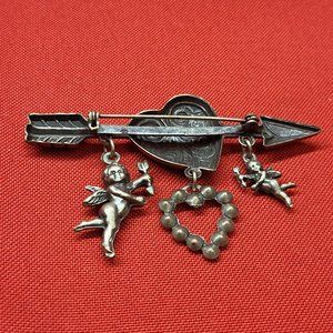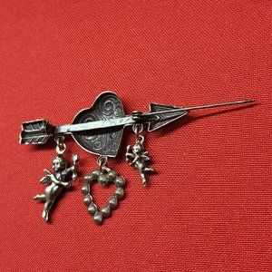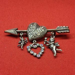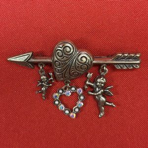 VTG Pin Brooch Arrow Through the Heart Hanging Angels