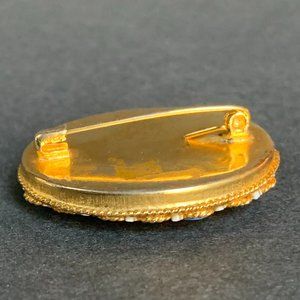 VTG Pin Micro Mosaic Italian Brooch Oval Glass Floral Red Green Gold