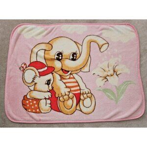 VTG Pink Blanket Elephant Watering Flower Mouse Throw Lap Acrylic Brown Red