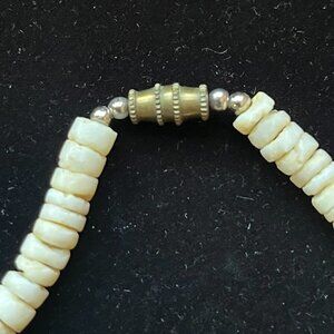 Add a touch of bohemian style to your outfits with this vintage choker necklace. The necklace features beautiful pink conch shell chips measuring appox. 0.75" with a length of 17.5" when closed. This necklace is perfect alone or layered with your favorite peices. Perfect for that ethnic and beachy feel.