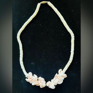 VTG Pink Conch Shell and Puka Shell Necklace 17.5" Beach Style Islands Boho