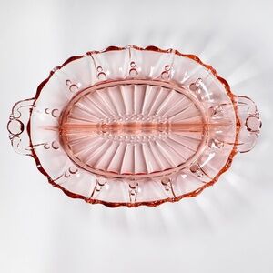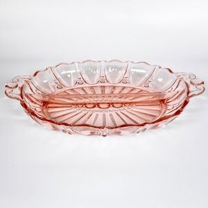 Vintage Pink Depression Glass Oval Divided Candy Relish Dish