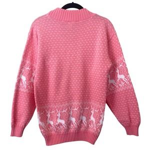 VTG Pink Holiday Print Acrylic Made In The USA Sweater