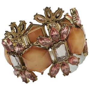 Add a touch of vintage elegance to any outfit with this stunning icy pink rhinestone flower bracelet. The bracelet features a stretch design that will fit comfortably on any wrist. The faceted glass beads and sparkling rhinestones make this bracelet perfect for any special occasion, from weddings to parties, and everything in between. This statement bracelet is a great addition to any jewelry collection, with its pink flower design and cottagecore style. The bracelet can be stacked with other pieces or worn alone for a bold and beautiful look. Whether you're dressing up for a formal event or just looking for a unique piece to wear every day, this bracelet is sure to make a statement.