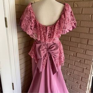VTG Pink Ruffles Lace Prom Pageant Gown SOUTHERN BELLE Dress Barbiecore 11 / 12