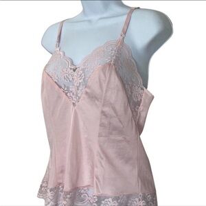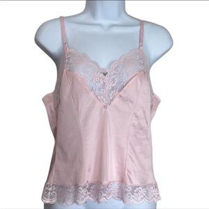 Vintage Lace Trim Pink Satin Cami Top Size XS