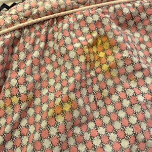 Yellow and green stains on the front (last three photos); minor fabric fraying along borders. Middle part is quilted. Bottom sides (on three sides) is a heavier cotton, not quilted. Fabric can be used for sewing projects or as bed spread/cover.