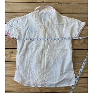 Pinot Noir Women's Light Yellow Short Sleeve Button Front Embroidered Blouse Size Medium