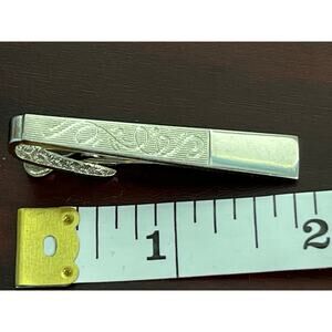 VTG Pioneer Tie Clip Silver Tone Engraved Scrolls Office Preppy
