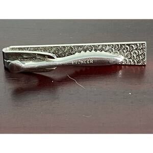 VTG Pioneer Tie Clip Silver Tone Engraved Scrolls Office Preppy, in great condition.
